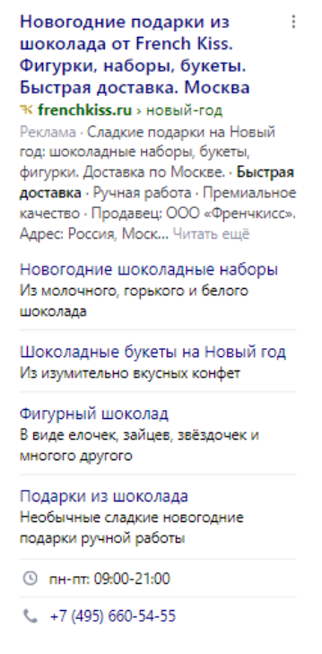 При создании объявлений мы используем все возможные инструменты Яндекс Директ (уточнения, быстрые ссылки итд), чтобы объявление занимало максимальную площадь на экране смартфона или десктопа пользователя.