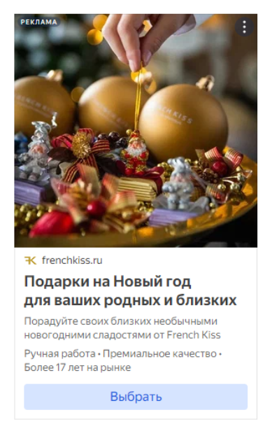 Спланировать, создать и запустить рекламную кампанию с целью получения продаж новогоднего ассортимента на сайте frenchkiss.ru