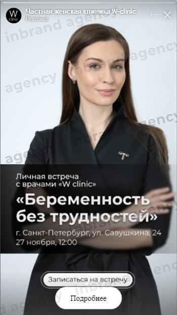 Затем была поставлена задача привлечь девушек из Санкт-Петербурга на бесплатные офлайн-встречи с врачами клиники "Беременность без тревоги".