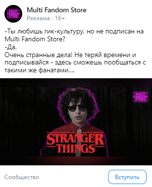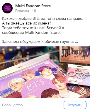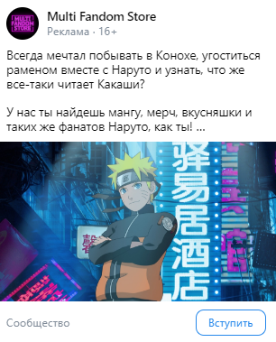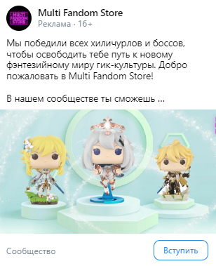 Привлечь новую аудиторию в сообщество Multi Fandom Store в VK. Спланировать, создать и запустить рекламную кампанию.
